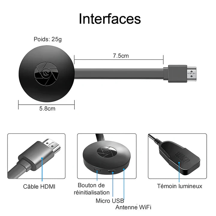 VisionCast funktioniert mit Android-, iOS-, Windows- und macOS-Geräten und unterstützt Miracast, AirPlay und DLNA. Einfach über HDMI oder USB verbinden und Inhalte sofort genießen. Leicht und tragbar – ideal für Reisen, Geschäftstreffen oder gemütliche Filmabende.